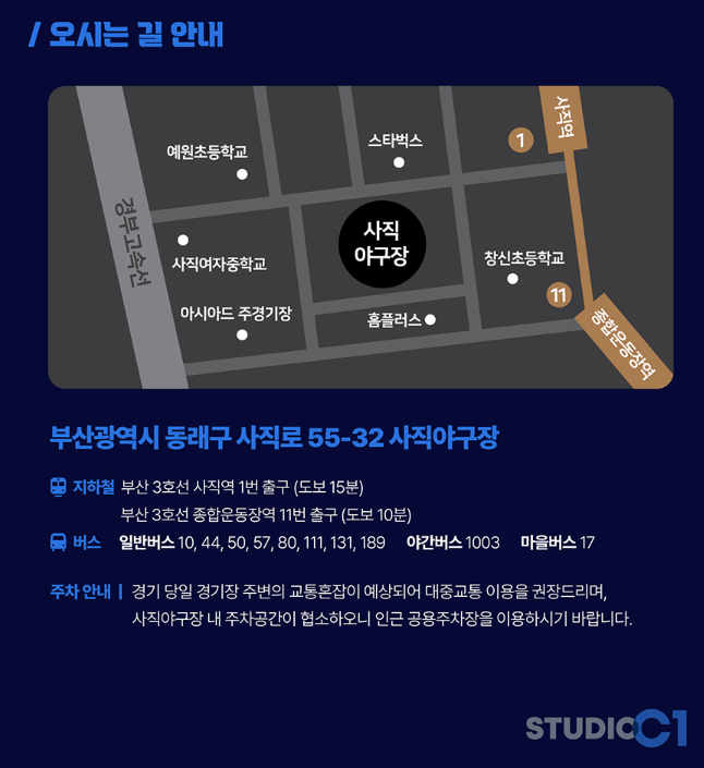 - 장소: 부산광역시 동래구 사직로 45 (사직야구장)